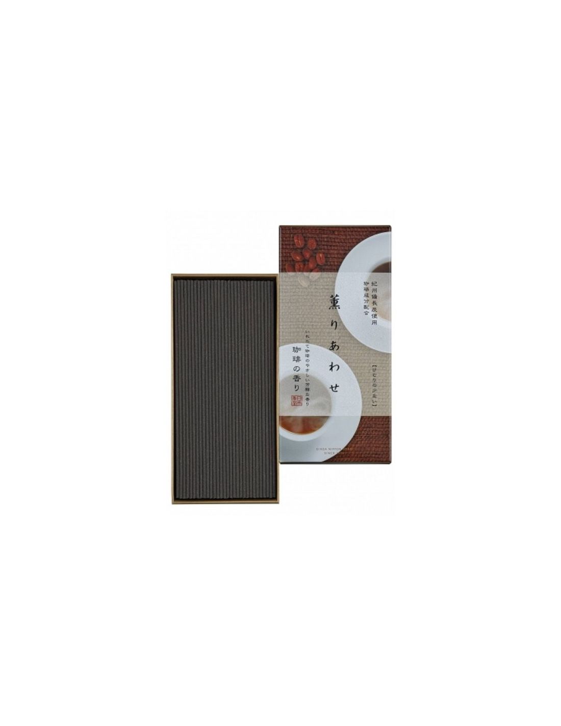 Agradable aroma de café recién molido. Contiene café y carbón Kishu bincho. Incienso con poco humo.