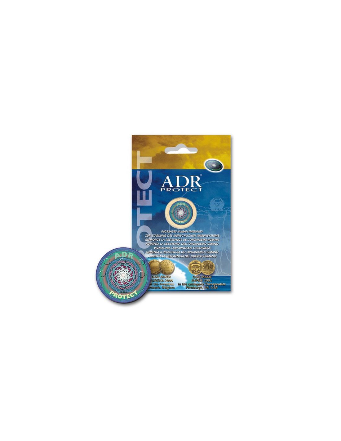 Este pequeño disco adhesivo, al estar en contacto con el cuerpo humano o su aura, reduce el efecto de los campos electromagnéticos que afectan a la salud. El ADR Protect, a través de la ecualización del nivel energético en todos los meridianos de acupuntura, restablece el equilibrio energético del cuerpo humano. De este modo los mecanismos de protección del organismo compensan las influencias de los campos electromagnéticos. Se puede colocar en el teléfono móvil, sobre el ratón del ordenador, en un medallón que acostumbremos llevar, en la silla de trabajo, en la plantilla de los zapatos, en el dorso del reloj, etc. Lo importante es que se encuentre en contacto directo con el cuerpo.