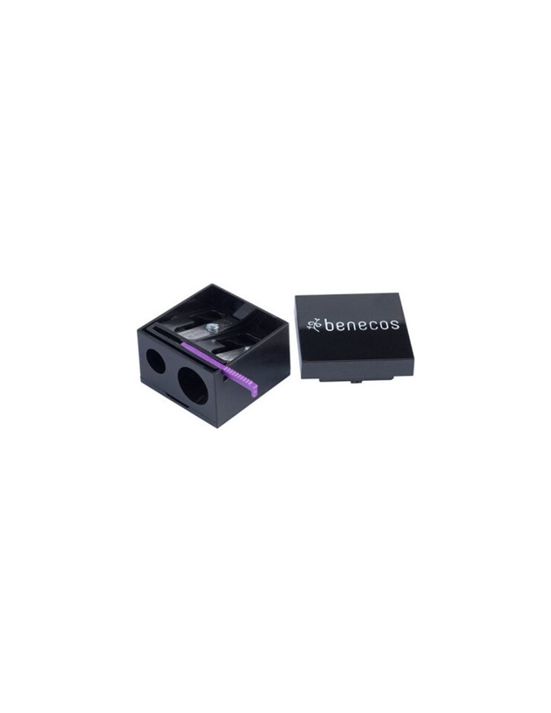 Sacapuntas práctico con tapa para que la viruta quede en su interior. Con dos orificios de diferente tamaño para lápices finos y gruesos de maquillaje.